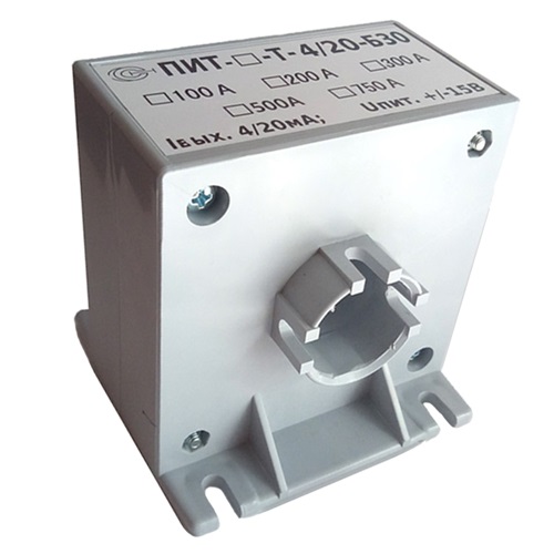• ПИТ-500-Т-4/20-Б30 - преобразователь измерительный переменного тока 0...500 А;