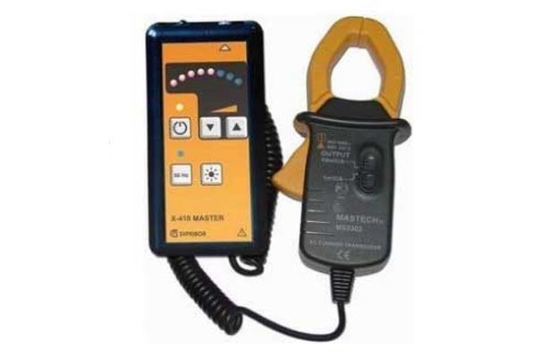 X-410 Master. Отборник кабеля "свой-чужой" диаметром до 29 мм. Замкнутый магнитопровод отборника позволяет безошибочно отбирать свой кабель в пучке кабелей. Отбор кабеля производят по сигналу генератора ГК-310А-2 или ГК-мини. Генератор подключают к жиле или экрану (оболочке) кабеля, которые заземлены на дальнем конце. Другой вывод генератора подключают к земле. Сигнал от генератора протекает по жиле (экрану) на землю через заземление на дальнем конце и через емкость "экран-земля". По соседним заземленным кабелям часть тока возвращается на станцию к генератору.