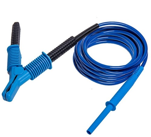 Провод измерительный 1,8м с разъемом "банан" и зажимом "Крокодил" 15кВ голубого цвета предназначен для работы с измерителем параметров электроизоляции MIC-15k1​.
