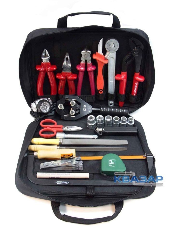 Набор инструментов НИР-СПЭ-01 предназначен для разделки и сращивания кабеля высокого напряжения, изготовленного из сшитого полиэтилена, а также для замены вышедших из строя участков кабельных линий. Состоит из 18 необходимых видов инструмента изолированных ножа и ножниц, ножовки по металлу, стриппера для снятия изоляции, переставных клещей, изолированных бокорезов, кусачек и плоскогубцев, торцевых головок, напильника и рулетки.