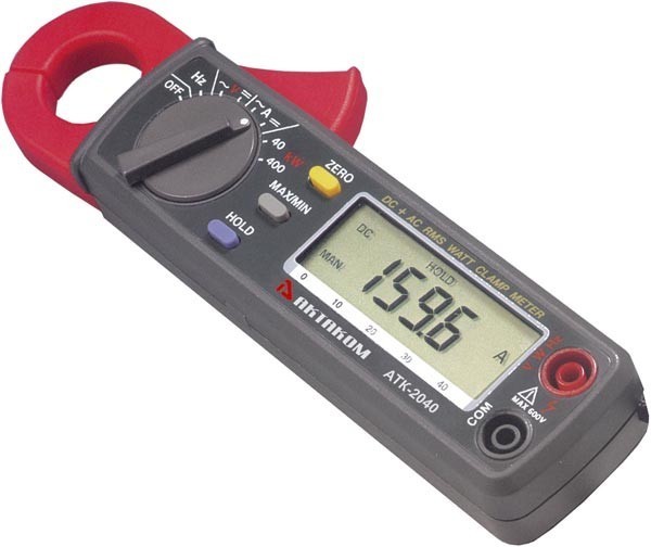 Токовые клещи-ваттметр АТК-2040: измерение постоянного (0,1 ... 400 А) и переменного (40 Гц ... 1 кГц) (0,1 ... 400 А) тока, постоянного и переменного (40 Гц ... 1 кГц) напряжения (0,1 ... 400 В), постоянной (0,01 ... 400 кВт) и переменной (0,01 ... 200 кВт) мощности, частоты (0,01 Гц ... 1000 кГц). True RMS. Фиксация min/max/hold. Диаметр захвата 23 мм. Базовая погрешность 1,5%. Графическая шкала. Питание 2х1,5 В. Поставляется в кейсе. Габариты 183х61,3х35,6 мм. Вес 190 г.
