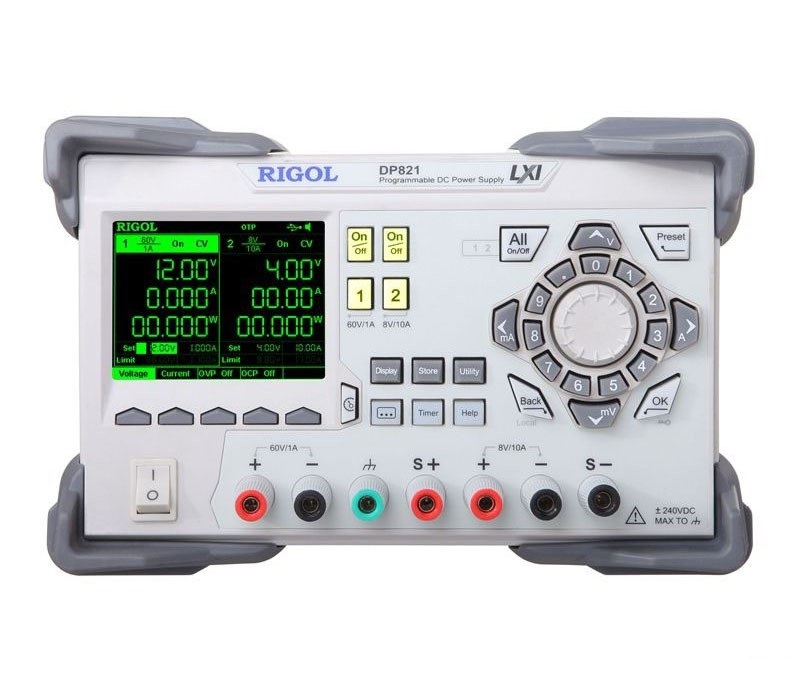 Программируемый источник питания Rigol DP821  - это воплощением великолепных технических характеристик: низкого уровня шумов и пульсаций, высокой точности установки напряжения и тока. Уникальный инновационный графический интерфейс в источнике питания Rigol DP821 предлагает цифровую, аналоговую и графическую формы отображения параметров в реальном времени. Важной особенностью источника питания Rigol DP821 является возможность провести контроль выходных параметров с регистрацией данных для их дальнейшего анализа. Источник питания Rigol DP821 позволяет запрограммировать выходные параметры, задержку и условия для синхронизации.