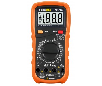 Мультиметры переносные ПрофКиП МП-106 предназначены для измерения напряжения постоянного и переменного тока, силы постоянного и переменного тока, сопротивления постоянному току, электрической ёмкости и частоты. Приборы оснащены жидкокристаллическими дисплеями для индикации результатов измерений. Мультиметры отличает компактность, незначительная масса и возможность автономного питания в различных условиях эксплуатации. Мультиметры предназначены для использования в цеховых и лабораторных условиях, при наладке и ремонте радиотехнического оборудования, электронных схем и узлов автоматики, а также при тестировании и ремонте промышленных электросетей. Компактные приборы, способные быстро и точно измерить различные параметры электросети. Устройства позволяют проверить целостность цепи и работу диодов, а также узнать переменные и постоянные параметры напряжения и тока, температуру, частоту, сопротивление и емкость. Приборы с небольшим дисплеем оснащены подсветкой, звуковой индикацией и функцией автоотключения при длительном бездействии. |