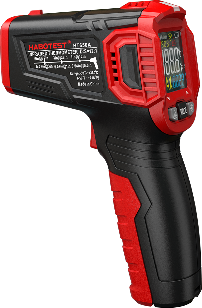 Инфракрасный термометр Habotest HT650A предназначен для бесконтактного измерения температуры. Пирометр определяет температуру поверхности объекта путем измерения энергии инфракрасного излучения от поверхности объекта.