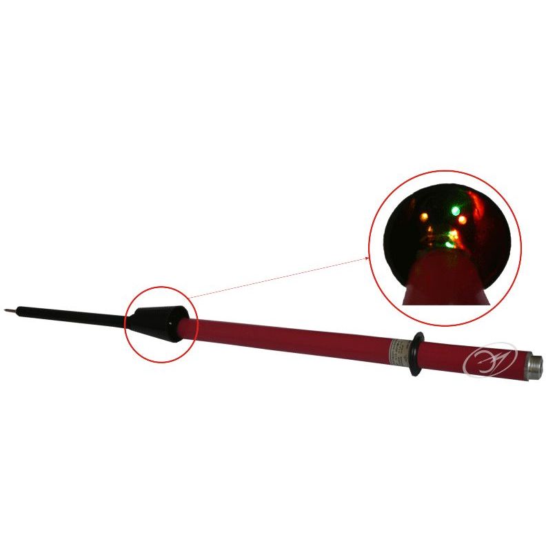 Фазоуказатель УВНФ–10СЗ позволяет определять опасное напряжение на деревянной опоре без применения заземляющего провода, а в комплекте со сборной 4–х звенной изолирующей оперaтивной штангой ШО–10–4–6,6 длиной 6,6м и весом 3,5кг, с земли без подъема на опору ВЛ. Фазоуказатель отличается яркой импульсной индикацией и мощным прерывистым звуковым сигналом.