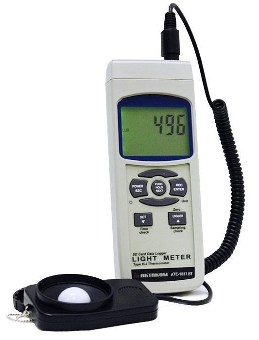 Портативный люксметр АТЕ-1537BT позволяет быстро и точно измерить освещённость от различных источников света: дневного света, ламп накаливания с вольфрамовой нитью, флуоресцентных ламп, ламп дневного света, ртутных ламп. Люксметр АТЕ-1537BT имеет внешний датчик, представляющий собой специализированный фотодиод с цветокорректирующим фильтром. В люксметре АТЕ-1537BT имеется интерфейс RS-232, что позволяет передать результаты измерения в компьютер. Интересной особенностью люксметра АТЕ-1537BT является возможность сохранения измеренных данных на карту SD в формате Excel в режиме реального времени без использования специального программного обеспечения. Наличие интерфейса Bluetooth обеспечивает люксметру АТЕ-1537BTбеспроводное соединение для отображения и регистрации данных на ПК (ОС Windows ) и любом мобильном устройстве, содержащим данный интерфейс (ОС Android).