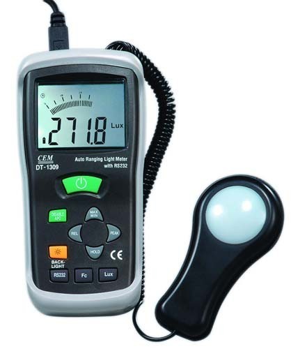 Люксметр DT-1309 удобен в использовании, малогабаритный с защитным чехлом, большим цифровым дисплеем с аналоговой шкалой проводит измерения в люксах либо фут-канделах. Компактный фотодетектор.