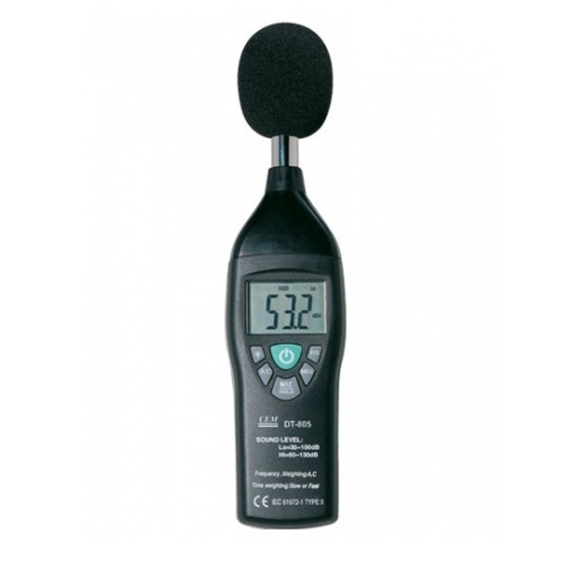 DT-805/805L компактные шумомеры с диапазоном измерений от 30 до 130 дБ, встроенными фильтрами А и С, быстрыми и медленными измерениями. Данная модель прибора, используется сотрудниками ГАИ для контроля шума выхлопа автомобиля, при проверке технического состояния транспортного средства.