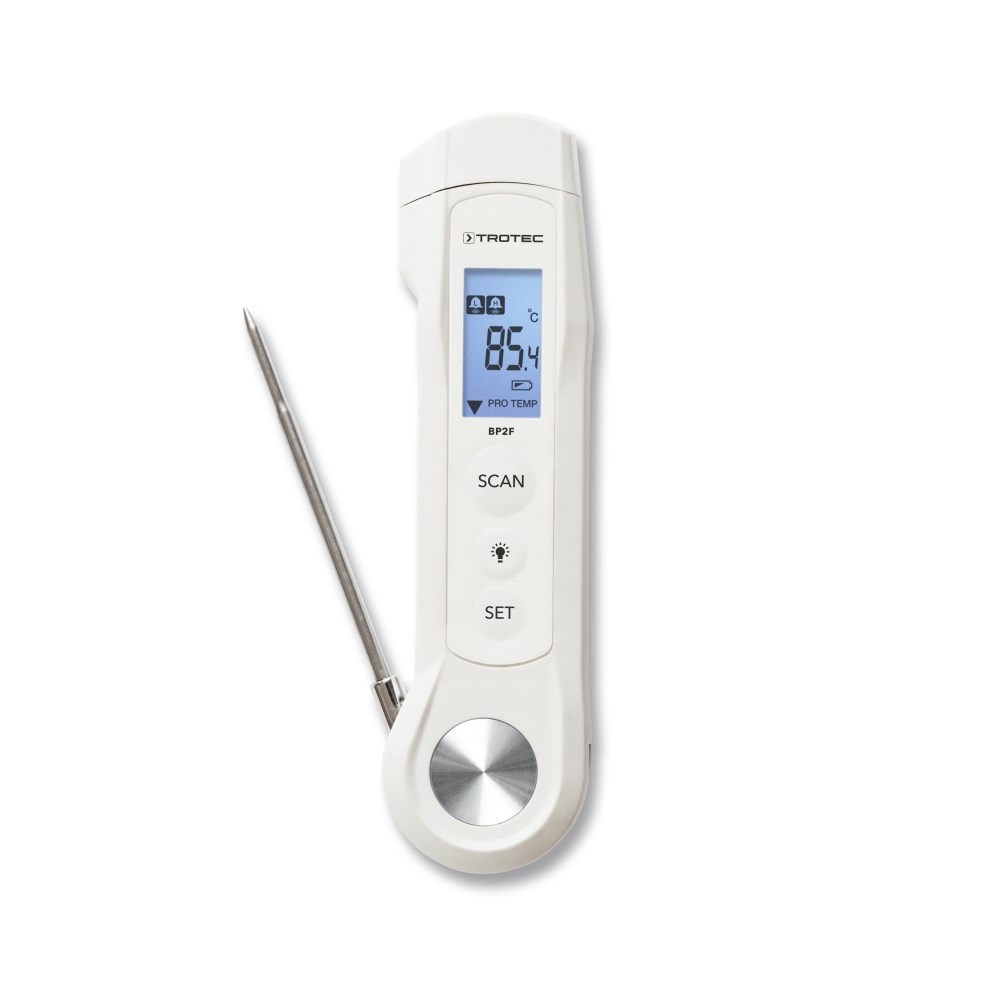 Пирометр Trotec BP2F представляет собой термометр для измерения температуры продуктов питания с помощью инфракрасного датчика или температурного щупа в соответствии со стандартом HACCP (Hazard Analysis and Critical Control Points).